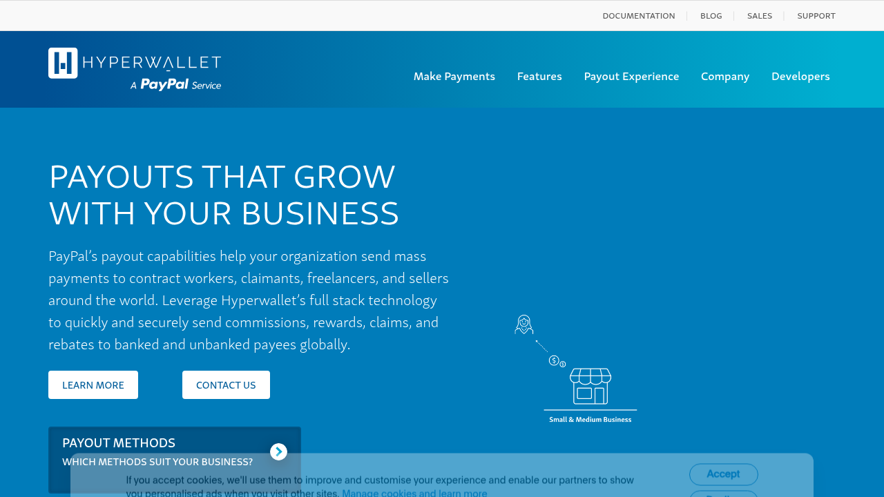 Hyperwallet, a PayPal-owned payout platform, provides global mass-payout infrastructure for organizations distributing funds to contractors, sellers, creators, and affiliates at scale. The platform focuses on large-scale payout programs through APIs and hosted payout portals.