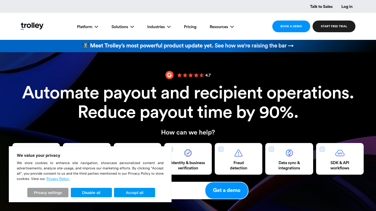 Trolley is a global disbursement tool built for internet-economy businesses that need international tax compliance alongside cross-border payout capabilities across 210+ countries with API-based payment creation and multi-currency processing.